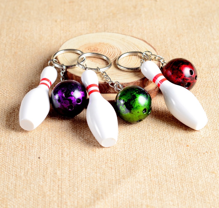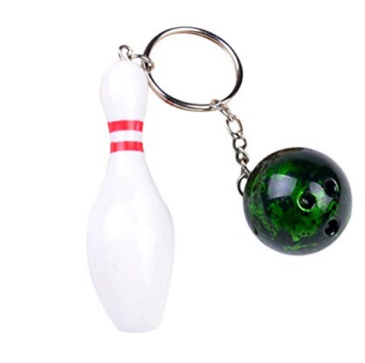 Přívěsek na klíče, ale nejenom na klíče bowlingová koule a kuželka, pro všechny fandy této skvělé zábavy. Tento přívěsek se stane hezkým doplňkem Vašich klíčů, potěší každého kdo má rád kuželky a bowling. Samozřejmostí je sofistikovaný kroužek, který připnete ke klíčím, batohu, apod.