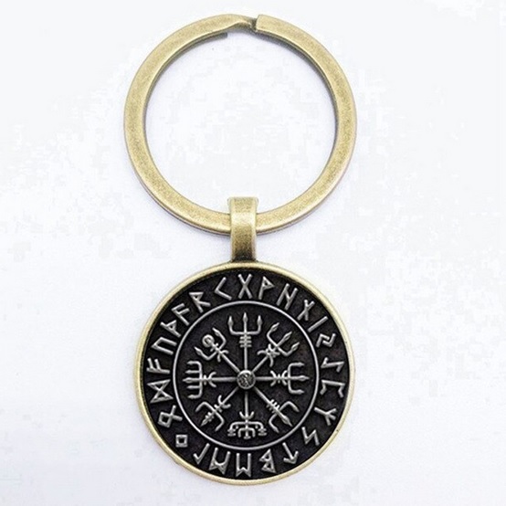 Přívěsek nejen na klíče vikingský kompas a pírko. Tento runový symbol, který sloužil jako kompas, měl za úkol chránit vikingské bojovníky při mořeplavbách a zajišťovat pomoc a ochranu bohů.