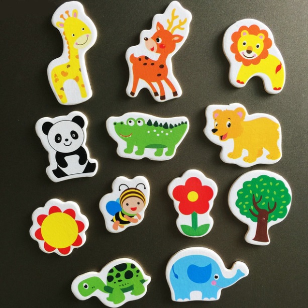 Sada 12 ks krásně ilustrovaných magnetků s motivem zvířatek, ale také zde najdete strom, květinku atd. viz obrázek. Magnetky lze využít k magnetickým tabulím nebo lze vykouzlit pěkné zdobení na Vaší lednici. Děti si vyhrají a Vy můžete v klidu vařit :).