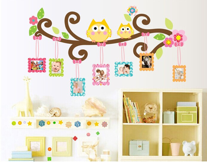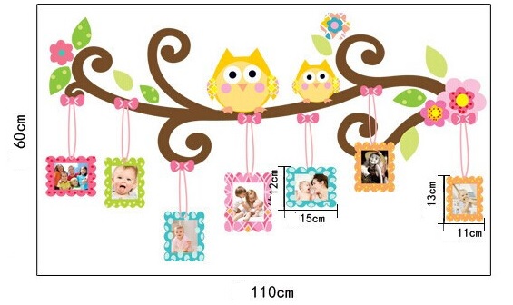 Krásná dětská samolepka sovičky na zeď, nejen do dětského pokoje. Samolepka obsahuje i několik malovaných rámečků, kam můžete vložit fotky své rodiny, dětí apod. Tato samolepka rozzáří každý pokojíček. Vyrobeno z kvalitního a nezávadného materiálu. Samolepka je vhodná jak na zeď, tak na jiné typy povrchů (nábytek, obklady, sklo apod.) Aplikace je velmi jednoduchá.