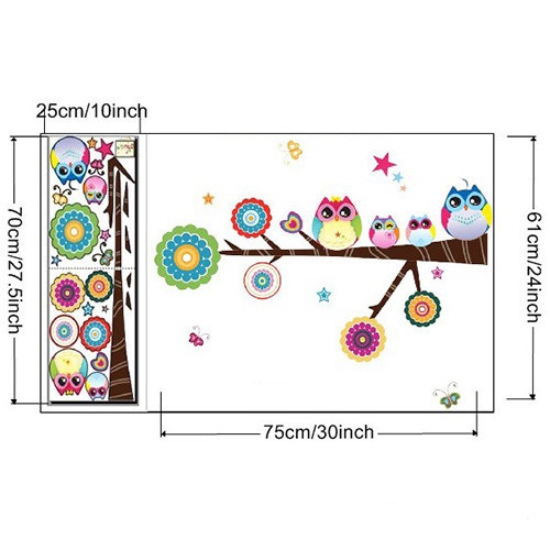 Krásná dětská samolepka sovičky na zeď, která rozzáří každý dětský pokoj. Vyrobeno z kvalitního a nezávadného materiálu, vhodné na všechny povrchy. Samolepka obsahuje celkem čtyři sovičky ve dvou velikostech (13 x 10,4 cm a 6,8 x 6,3 cm) a jednu větev (o délce 69 cm) včetně květu. Samolepka je vhodná jak na zeď, tak na jiné typy povrchů (nábytek, obklady, sklo apod.) Aplikace je velmi jednoduchá.