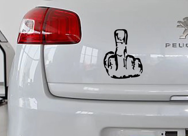 Samolepka na automobil vztyčený prst Fuck You. Touto samolepkou můžete Všem naznačit co si myslíte :). Samolepku dodáváme v bíle a černé barvě o velikosti 15x15 cm. Vaše auto bude nepřehlédnutelné.