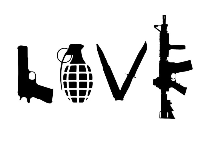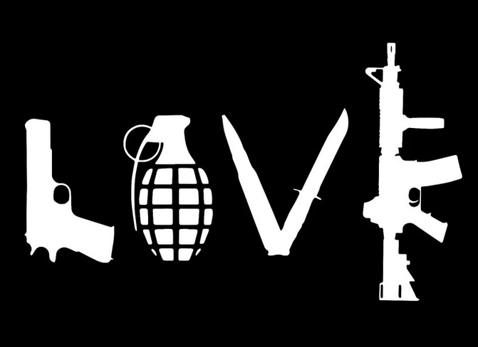 Samolepka pro ty, kteří mají v oblibě zbraně. Nápis LOVE je sestaven z oblíbených zbraní a vhodný na Vaše auto. Stylová samolepka se kterou bude Vaše auto nepřehlůdnetelné.