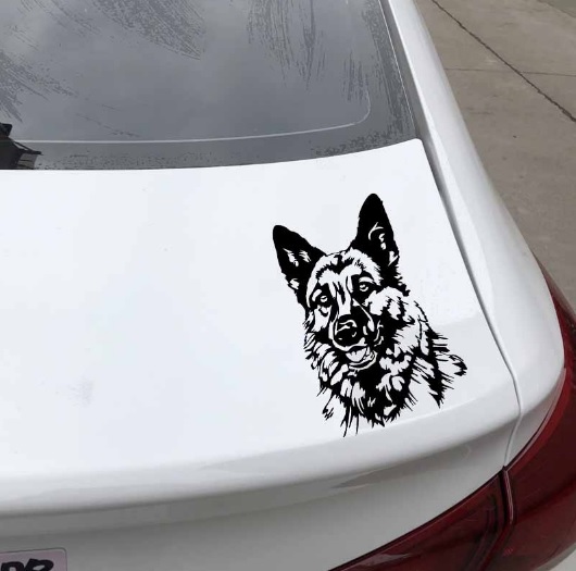 Samolepka na automobil německý ovčák. Tato samolepka je vhodná pro všechny milovníky pejsků a převážně plemene německého ovčáka. Samolepku dodáváme ve stříbrném a černém provedení. Ukažte všem kdo je Váš nejlepší přítel a ozdobte si Váš automobil touto krásnou samolepkou.