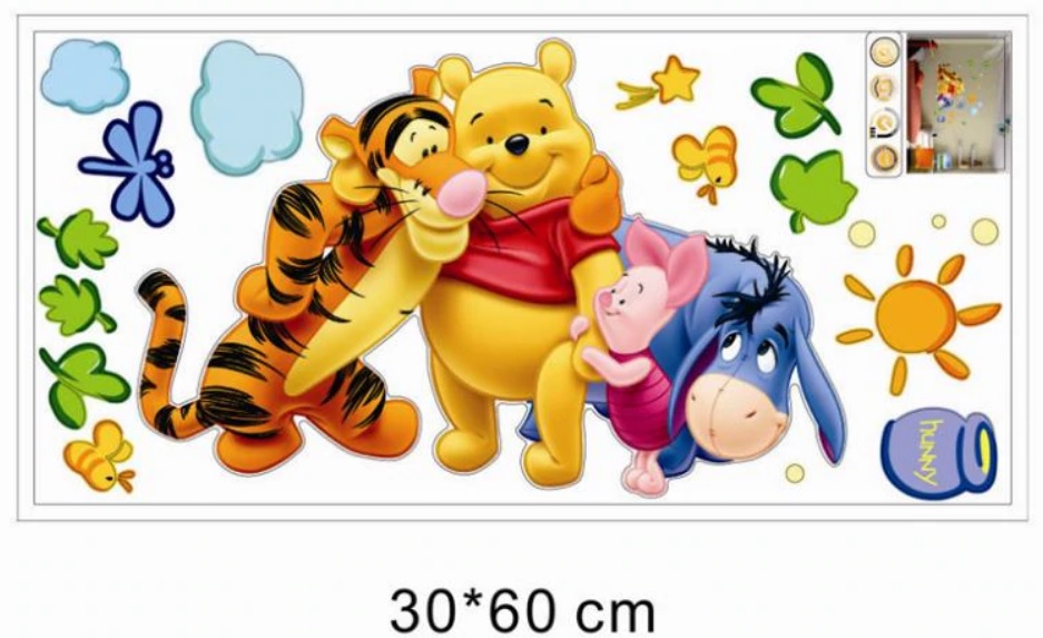 Krásná dětská samolepka medvídek Pů a jeho kamarádi, které rozveselí každý dětský pokoj. Jde o jednoho z nejznámějších hrdinů dětské literatury, který je milován dětmi po celém světě. Vyrobeno z kvalitního a nezávadného PVC materiálu, vhodné na všechny povrchy (nábytek, obklady, zeď, sklo apod.) Aplikace je velmi jednoduchá.