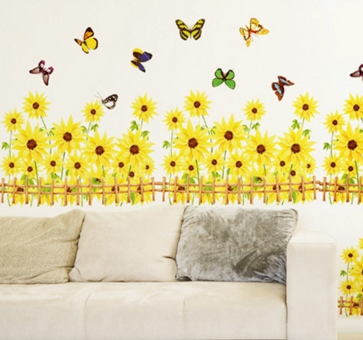 Zkrášlete svůj pokoj, koupelnu, kuchyni apod. touto krásnou samolepkou na zeď slunečnice s motýlky a udělejte si tak modernější a útulnější domov. Samolepka je vyrobeny z kvalitního a nezávadného materiálu, lze ji použít opakovaně a nezanechává žádné stopy ani zbytky lepidla. Samolepka je vhodná jak na zeď, tak na různé typy povrchů (nábytek, obklady, sklo apod.) Aplikace je velmi jednoduchá.,