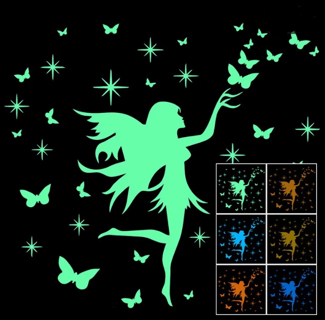 Svíticí neboli fosforeskující samolepka na stěnu víla s motýlky jsou velice oblíbenou bytovou dekorací do dětských pokojíčkú. Ve tmě nabízí zajímavý designový prvek, který krásně oživý dětský pokojíček. Udělejte svému malému radost a nechte mu rozzářit pokojík.