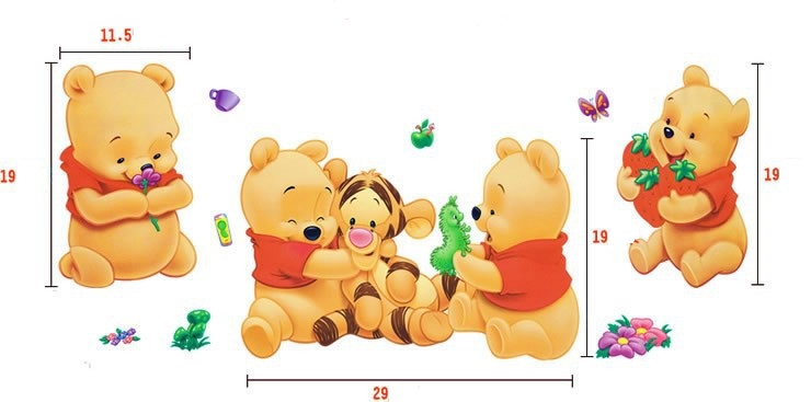 Krásné dětské samolepky medvídek Pů, které rozveselí každý dětský pokoj. Jde o jednoho z nejznámějších hrdinů dětské literatury, který je milován dětmi po celém světě. Vyrobeno z kvalitního a nezávadného PVC materiálu, vhodné na všechny povrchy (nábytek, obklady, zed, sklo apod.) Aplikace je velmi jednoduchá.