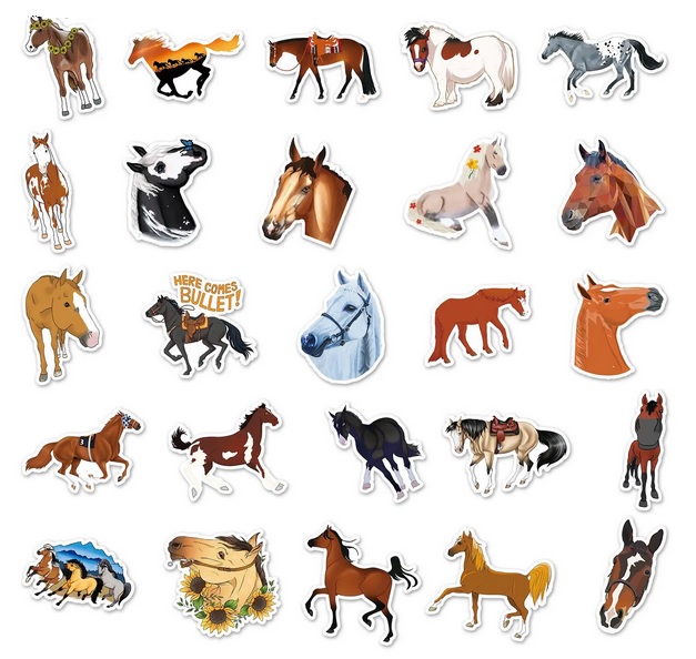 Velmi hezké samolepky těchto krásných zvířat. Kůň je považován za nejkrásnější zvíře na světě a tyto samolepky jistě udělají radost Všem, kteří je milují. Velmi hezký dárek. Samolepky jsou kvalitní a vodě odolné.
