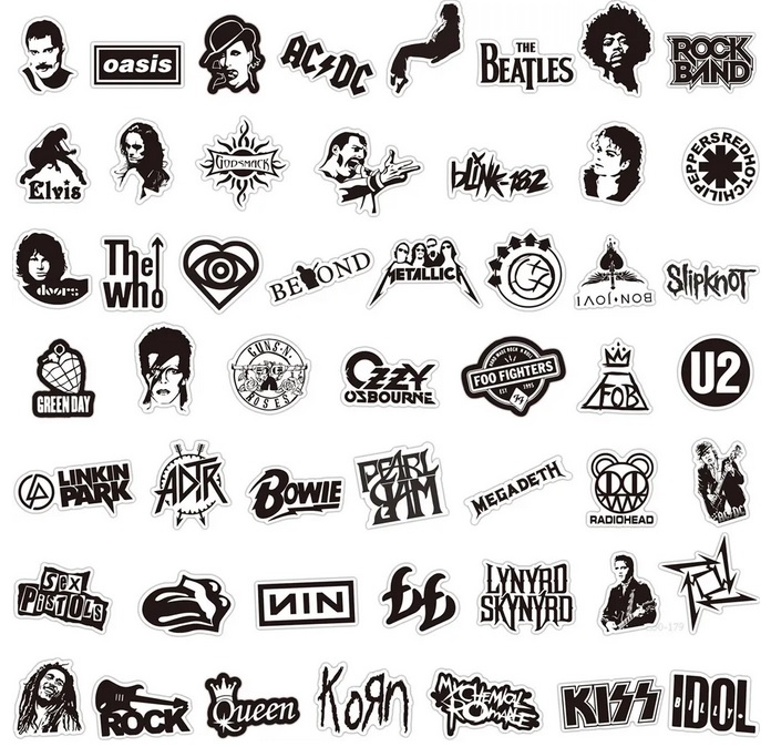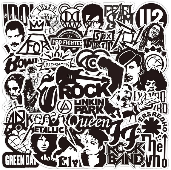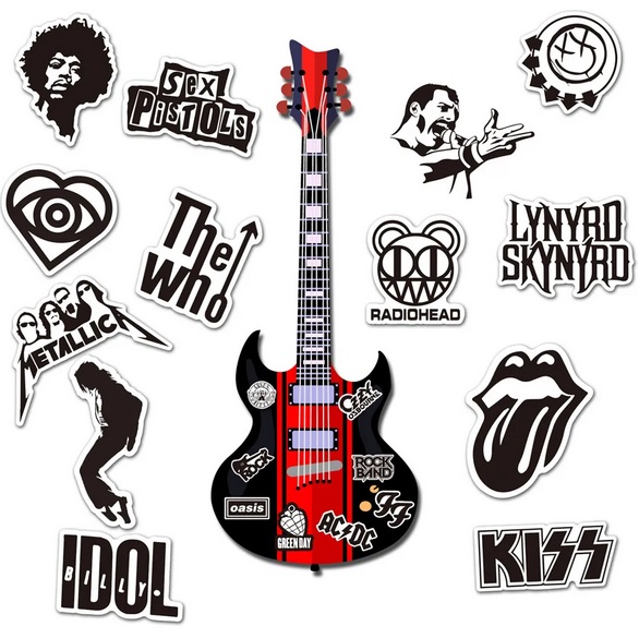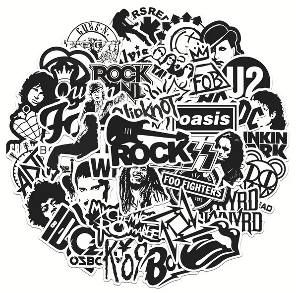 Skvělé rockové samolepky pro milovníky tohoto drsného hudebního stylu. Samolepky znázorňují mnoho známých rockových kapel, hudebníku a rockových symbolů. Samolepky jsou velice kvalitní a voděodolné. Prostě si polepte co chcete. Skateboard, snowboard, kolo, helmu, kufr, notebook, auto atd. možnosti jsou neomezené.