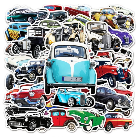 Super samolepky veteránů, které lze nalepit na všechny možné povrchy. Potěší oko i duši všech milovníků starých aut. Samolepky jsou velice kvalitní a voděodolné. Prostě si polepte co chcete. Skateboard, snowboard, kolo, helmu, kufr, notebook, auto atd. možnosti jsou neomezené!