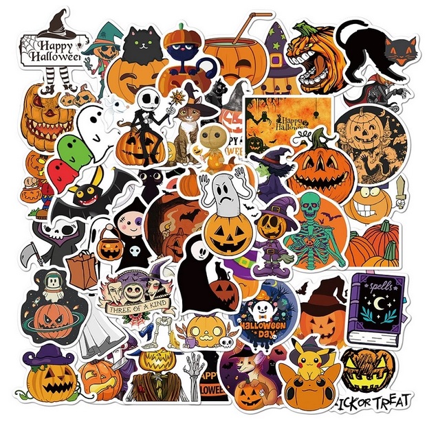 Sada 30 ks strašedelných samolepek Halloween. Samolepky veselých strašidel, kostlivců, dýní apod. Hezké samolepky pro malé i velké. Samolepky jsou velice kvalitní a voděodolné.