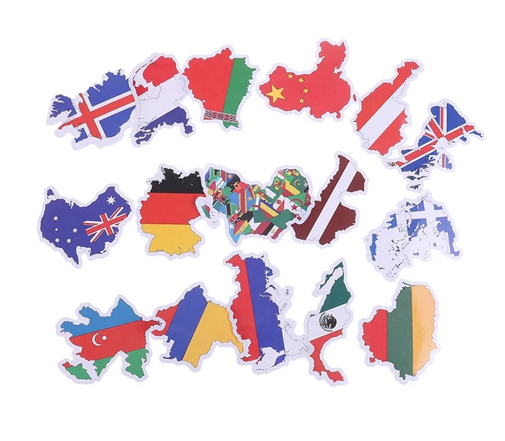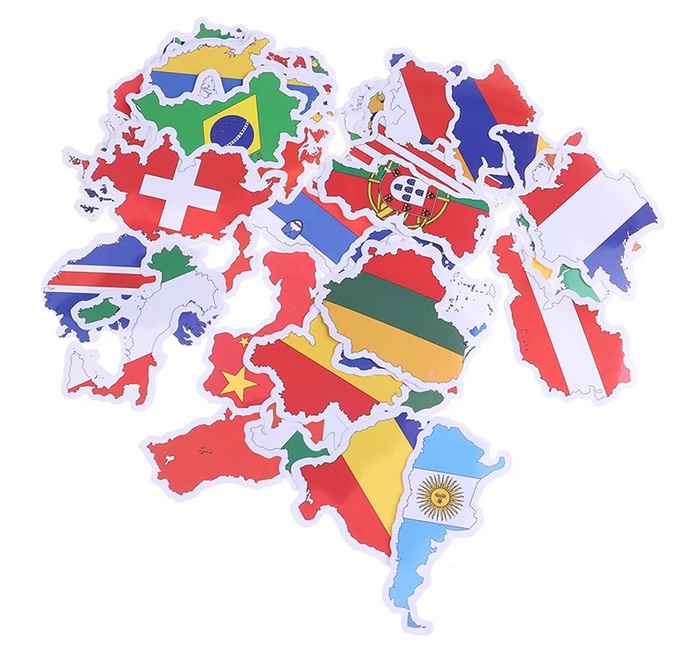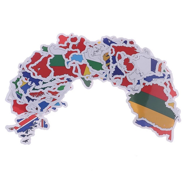 Sada 50 ks samolepek světových velmocí a zemí. Vylepte si Vaši oblíbenou zemi kam budete chtít, ať už jste zemi navštívili, nebo se teprve chystáte, jistě Vám udělá radost. Samolepky jsou velice kvalitní a voděodolné.