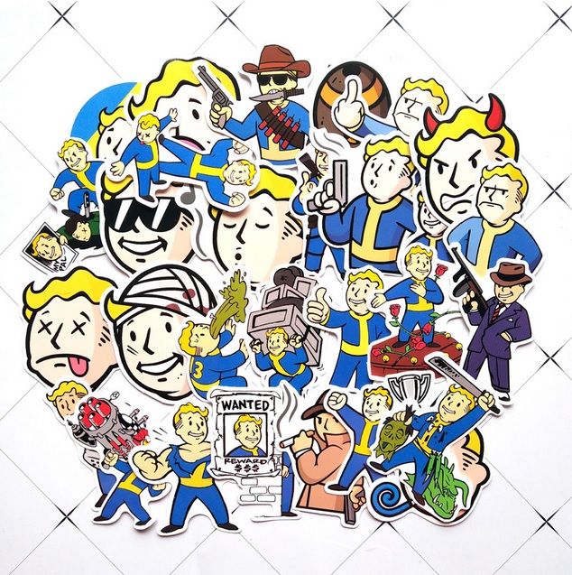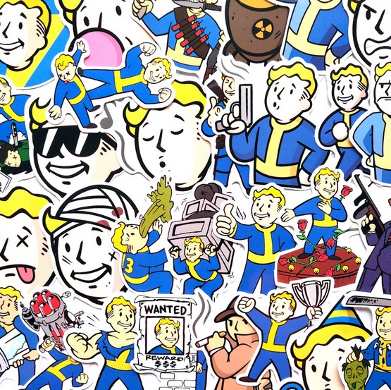 50 ks samolepek ze světa Fallout, které nesmí chybět žádnému hernímu nadšenci hry Fallout. Na samolepkách jsou vyobrazení herní hrdinové a postavičky z této skvělé hry. Samolepky jsou velice kvalitní a voděodolné. Prostě si polepte co chcete. Skateboard, snowboard, kolo, helmu, kufr, notebook, auto atd. možnosti jsou neomezené.