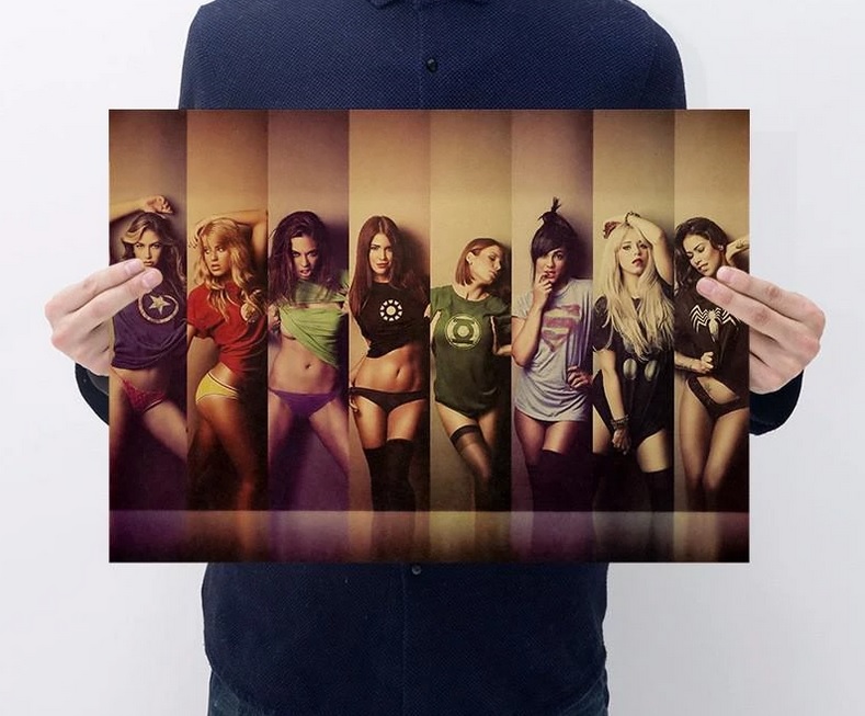 Stylový a sexy plakát: holky v hrdinských tričkách. Ozdobte stěnu tímto cool plakátem pěkných a hezkých slečen :) Krásné, stylové, a sexy.