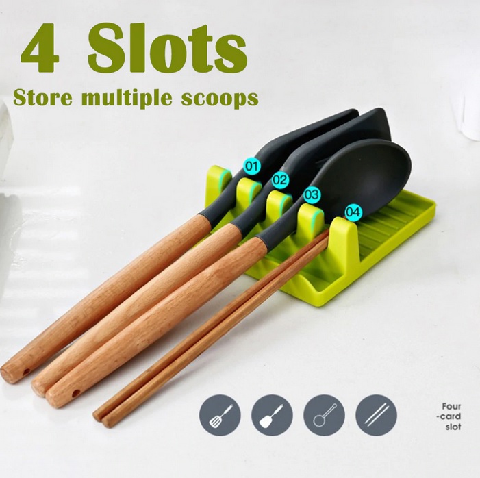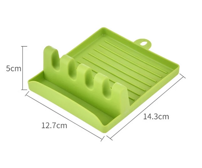 Stále nevíte kam nejlépe odložit naběračku, lžíci, vařečku atd. poté co zamícháte Váš oblíbený pokrm. Máme pro Vás řešení, tuto skvělou pomůcku do Vaší kuchyně v hezké zelené barvě. Na tento odkladač lze odložit i pokličku a jakékoliv míchatko viz. foto. Lehce omyvatelné, lze vložit do myčky. Tato pomůcka se stane nepostradatelnou součástí Vaší kuchyně.