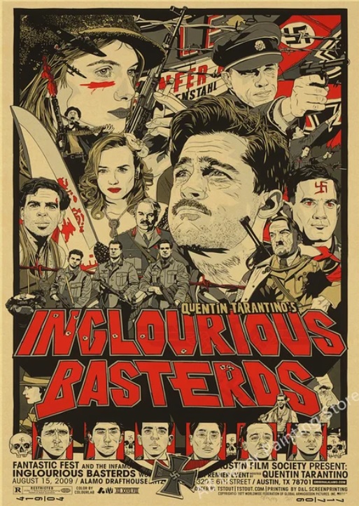 Naprosto skvělý plakát k filmu Inglourious Basterds/Hanební pancharti, kdo by neznal tento kultovní snímek od geniálního režísera Quentina Tarantina. Pro Všechny milovníky tohoto filmového skovstu. Hanebný pancharti "jízda plná krve, potu, slz a touhy po pomstě".