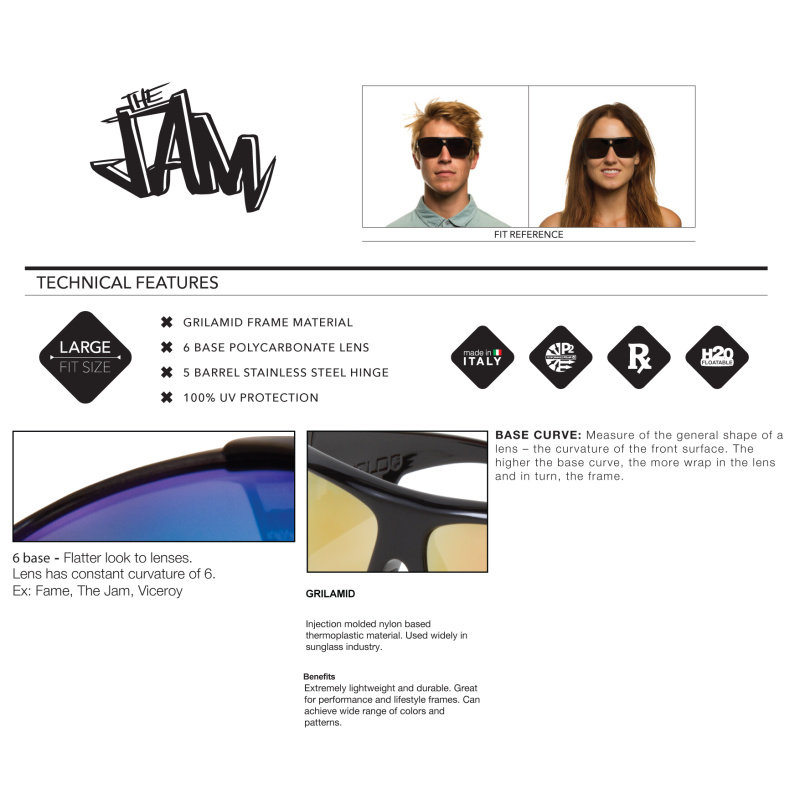 Skvěle vypadající a dokonale padnoucí sluneční brýle The Jam, ve kterých budete nepřehlédnutelní. Součástí balení je krabička, čistící hadřík a pytlík z mikrovlákna.