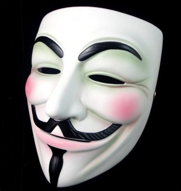 Maska Guy Fawkese (v poslední době notoricky známá spíše jako maska Anonymous) se poprvé objevila v komiksu a filmu V jako Vendetta. Dnes už zažitá jako symbol hnutí Anonymous. Anonymous je skupina hackerů, kteří o sobě dávají čím dál častěji vědět. Maska se prichycuje k obličeji gumkou. Nikde netlačí, ani nezavazí a jednoduše padne jako ulitá. Odskoušejte si nevšední zážitek při focení vašich narozenin, párty, svatby, plesu, rodinné či firemní oslavy atd.