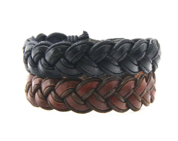 Silný pletený kožený náramek