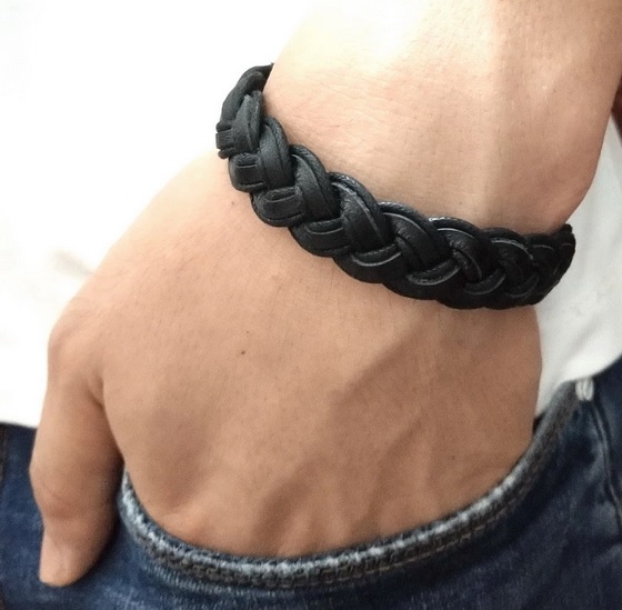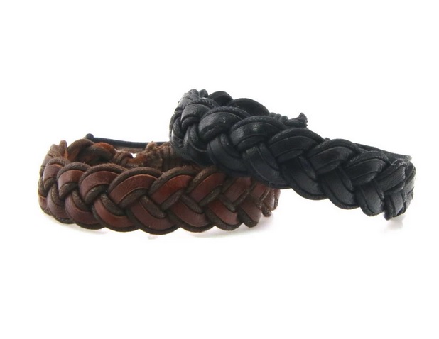 Silný pletený kožený náramek