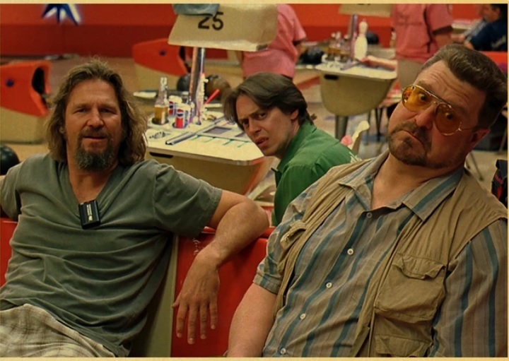Naprosto skvělý plakát z filmu Big Lebowski. Jeff "Dude" Lebowski je nejlenivější chlápek z Los Angeles a okolí. Miluje bowling, koktejl zvaný Bílý medvěd, marihuanu a svůj koberec.
