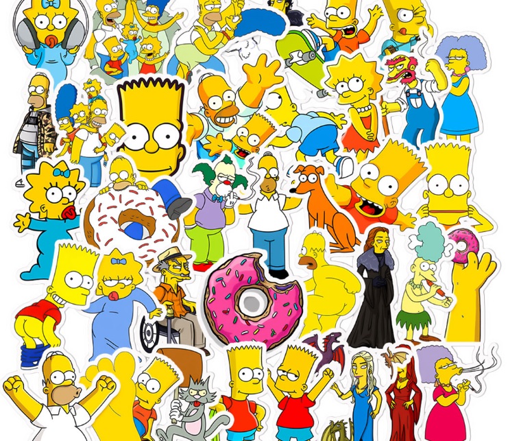 Sada 50 ks skvělých samolepek rodinky Simpsonových. Bárt, Líza, Homer, Meggie, Marge a mnoho dalších skvělých postaviček ze světa Simpsnů mohou být nyní Vaše. Pokud máte rádi tyto veselé žluté postavičky, tak tyto samolepky jsou určeny přímo pro Vás. Tyto samolepky potěší každého, kdo má rád seriály této veselé rodinky. Samolepky jsou velice kvalitní a voděodolné.