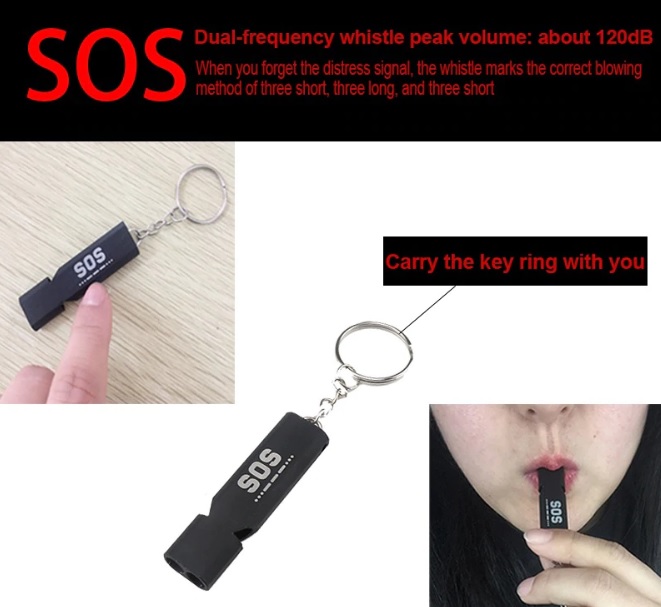 EDC (every day cary: ke každodenímu nošení) S.O.S. píštalka černé barvy vyrobena z leteckého hliníku. Tato vysoce frekvenční píštalka byla navržena k použití v krizových situacích pro táborníky, horolezce a lidi pohybující se v terénu, k signalizaci a vysílání nouzových zvukových signálů. Proto je tón hvizdu produkovaný píšťalkou vyladěn tak, aby byl vysocefrekvenční a šel slyšet na stovky metrů. Dvoukomorový systém produkuje silnou zvukovou frekvenci a proto se nese velmi daleko například i v mlze.