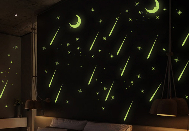 Krásná dekorace svítící samolepky na zeď do dětského pokojíčku.