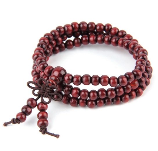Tibetský náramek z akátových korálek - tmavě hnědý