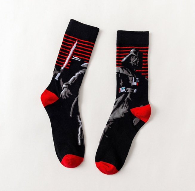 Veselé (happy) ponožky Star Wars Darth Vader, které zaujmou svým netradičním designem a provedením. Skvěle se hodí ke každému outfitu, zaujmou a vystihnou Váš styl. Jsou prostě cool ať už na párty, do společnosti, či jen tak. Ponožky jsou vyrobeny z kvalitního materiálu, dýchatelné a hypoalergenní. Ponožky jsou unisex, takže je může nosit každý z nás.