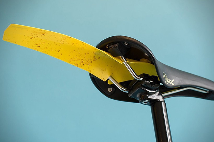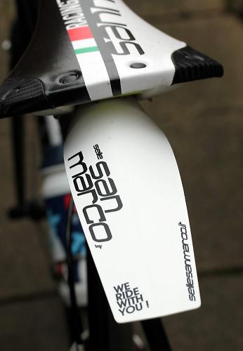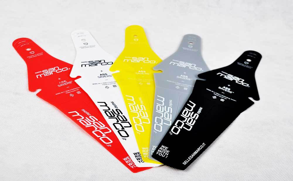 Možná to byl jen kus plastu nebo Pet lahev, ze kterého nůžky a šikovné ruce vykouzlili základ těchto lehkých, vysoce skladných a přitom účinných blatníčků San Marco. Vezněme to od jednoduššího zadního kousku, který má vystřižené otvory pro lyžiny sedla, na které se díky tomu jednoduše nacvakne. Vzhledem k důmyslnému tvaru drží na svém místě za všech okolností naprosto jistě a spolehlivě a to i v případě, že si o něj brnknete, po každé, když půjdete „za sedla“. Skutečnost, že jej vážně nemusíte kontrolovat co pět minut, vám plně dojde ve chvíli, kdy jej budete poprvé sundávat. Je totiž pod sedlem zaklíněný jako ježek v kleci. Ale to je vlastně dobře, díky tomu jej nemáte šanci ztratit.